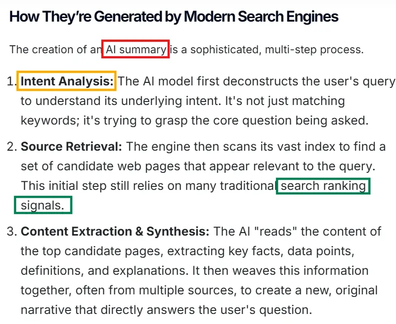 Hence, if your page only targets short keywords, it may not appear in AI responses. Therefore, write your content that is easy to understand and in a conversational tone. Make headings in a question format. Provide short answers under every heading and then explain the things later.
