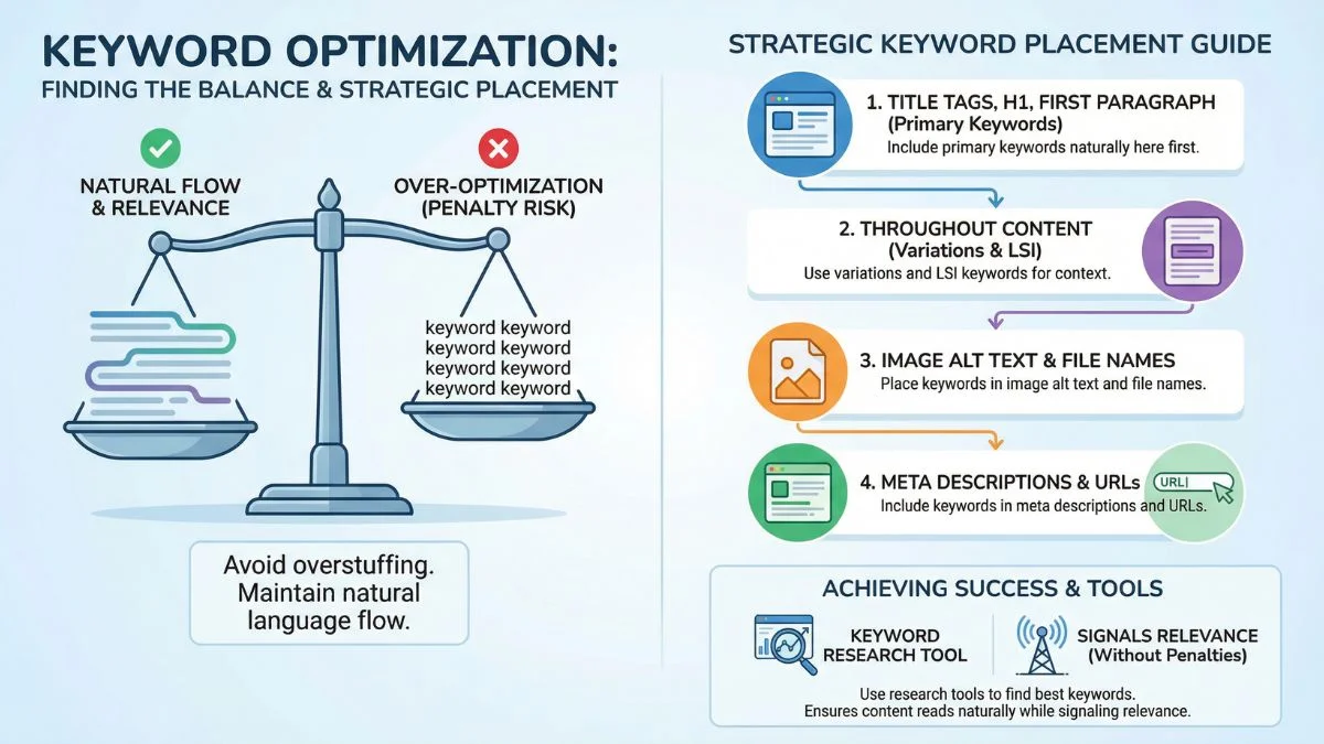 Effective keyword usage is about balance. You need to include keywords naturally while avoiding over-optimization that can trigger penalties.